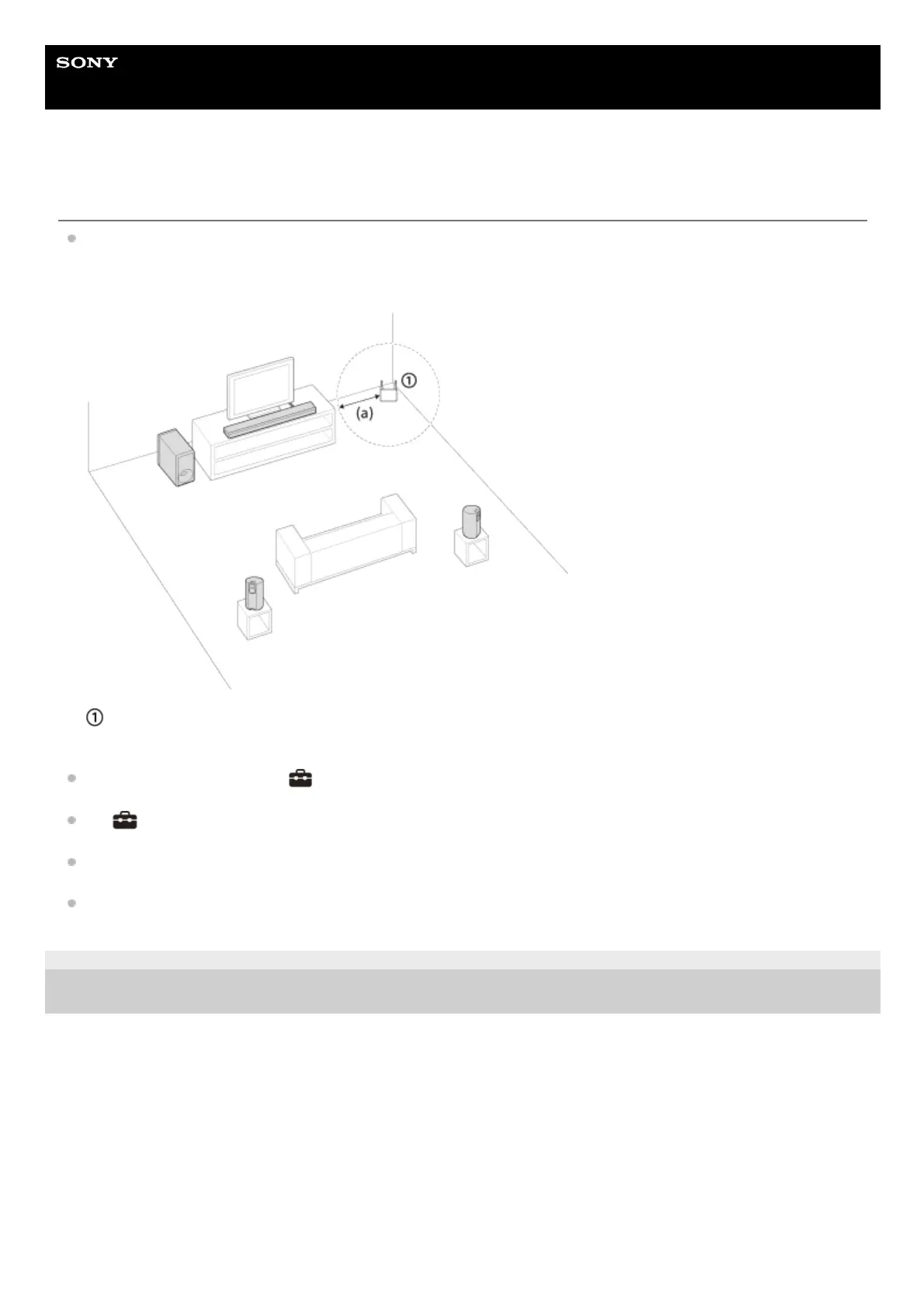 Install the speaker system, the optional rear speakers and subwoofer at a distance of 1.5 m (5 ft) or more from a