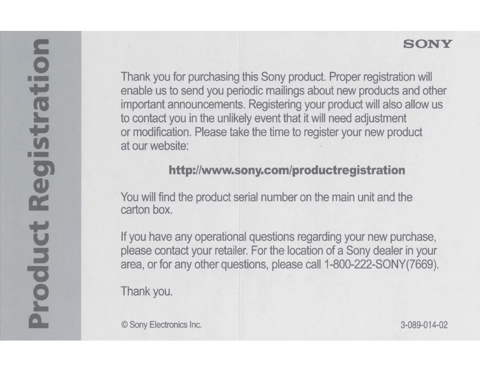 http://www.sony.com/productregistration