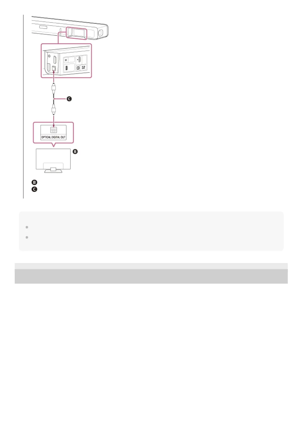 Insert a plug of the optical digital cable in the correct direction by checking the shape of the plug and connector on the bar