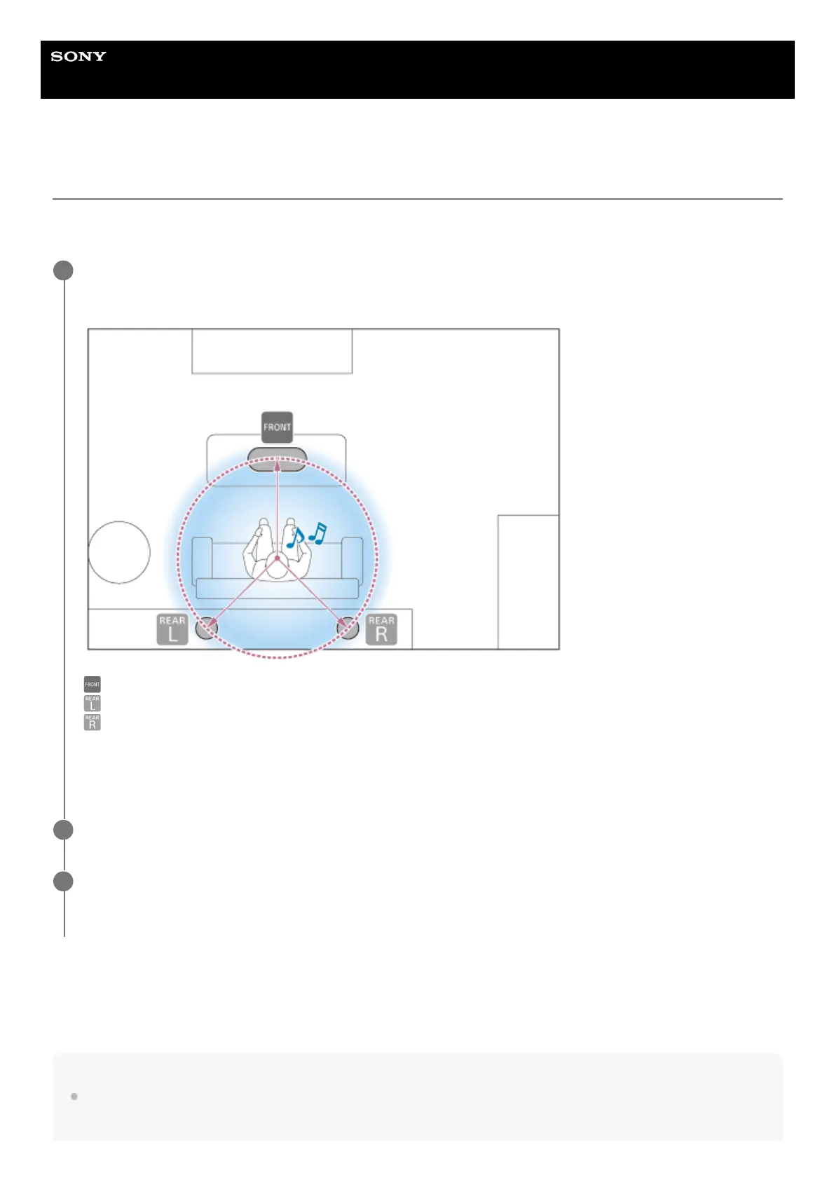 Place the front and rear speakers at a distance of 1.0 m – 1.2 m (3.3 ft – 4.0 ft) radius around you for the most