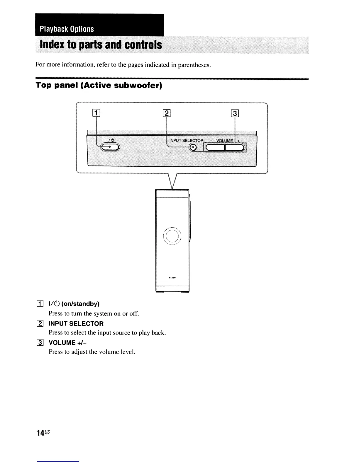 Sony HT-CT100 - Playback Options; Control Panel and Top Panel Overview