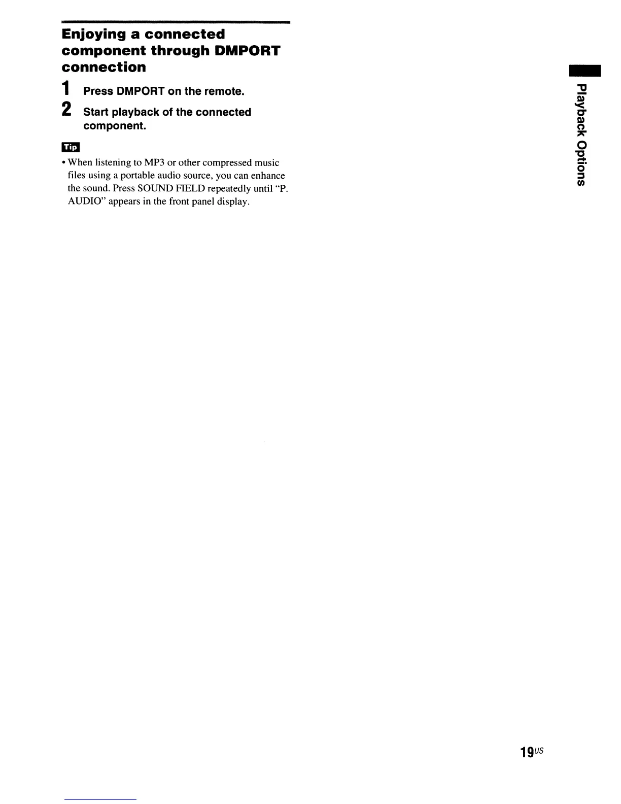 Sony HT-CT100 - DMPORT Component Playback; Connecting and Playing DMPORT Devices