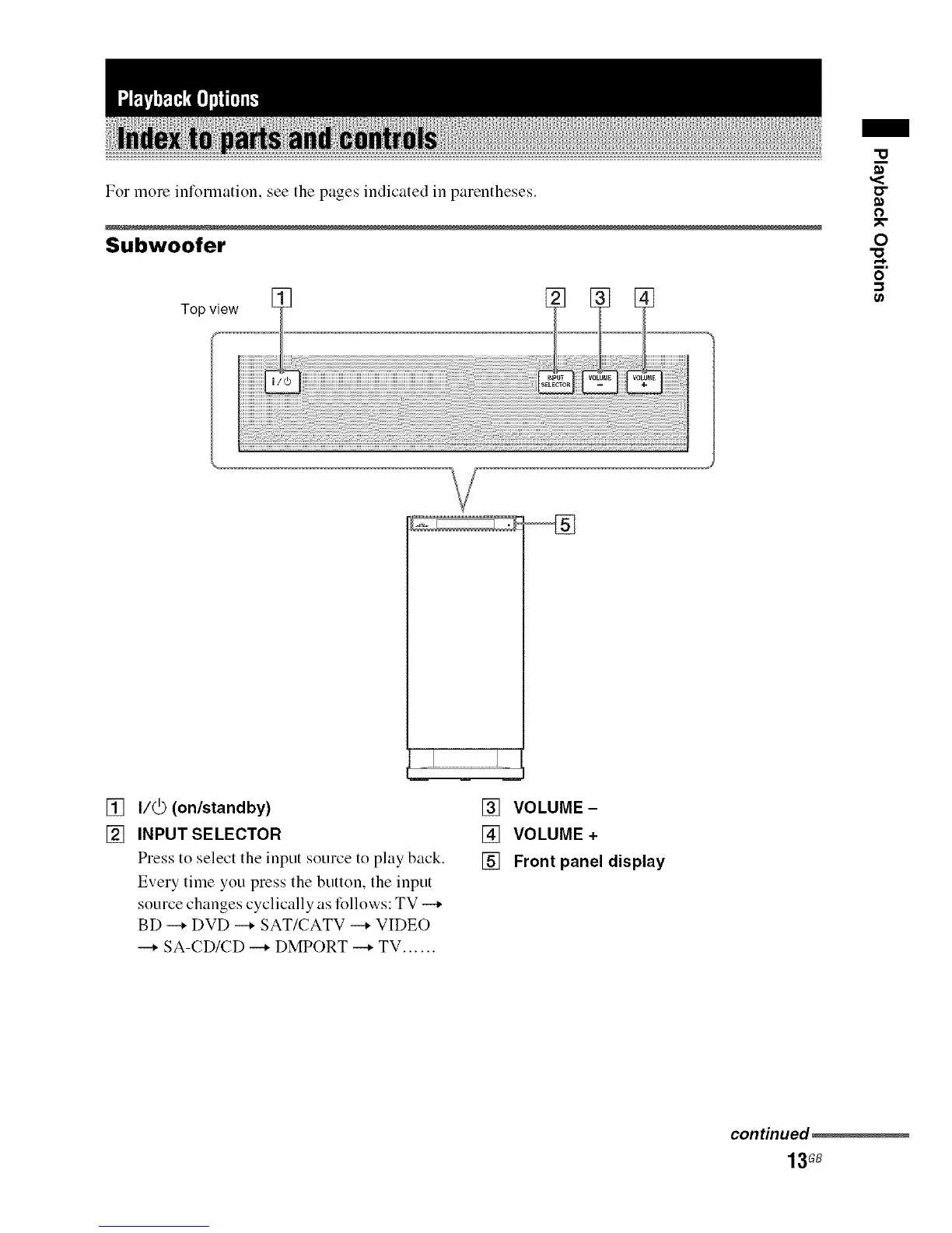 Press to select the input source to play back.