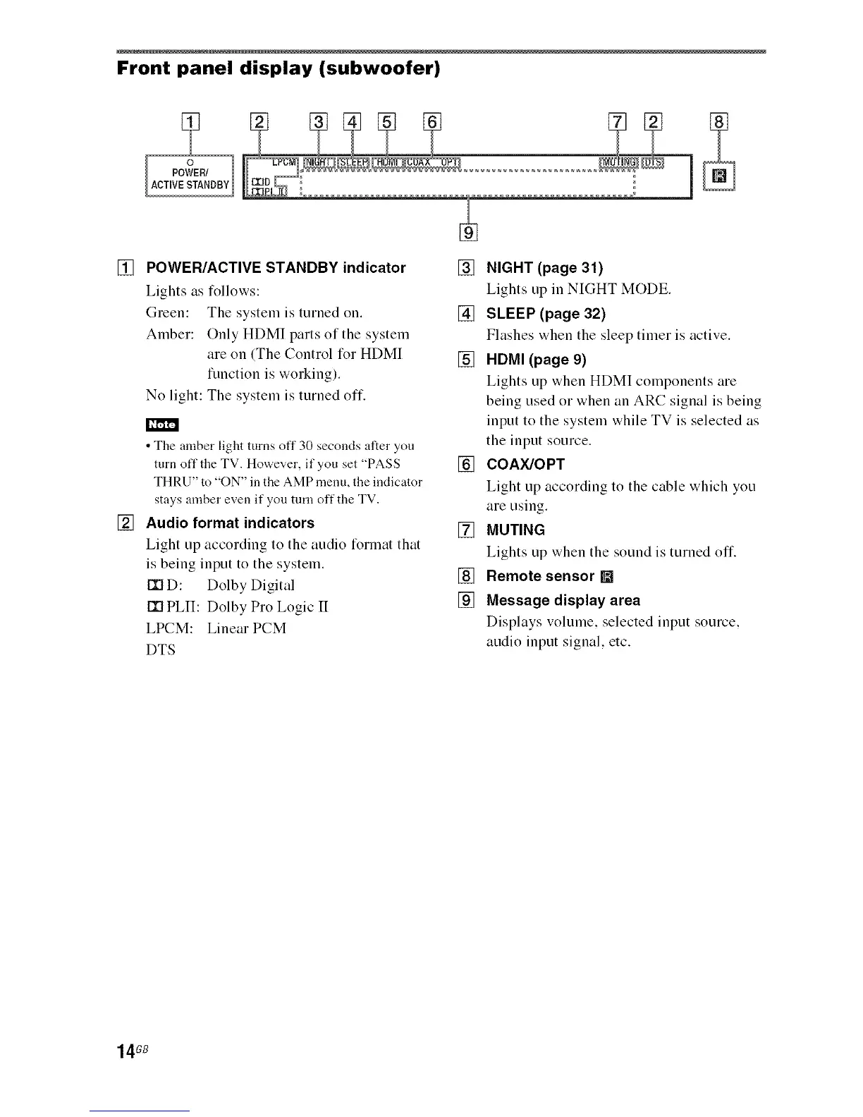 Front panel display (subwoofer)