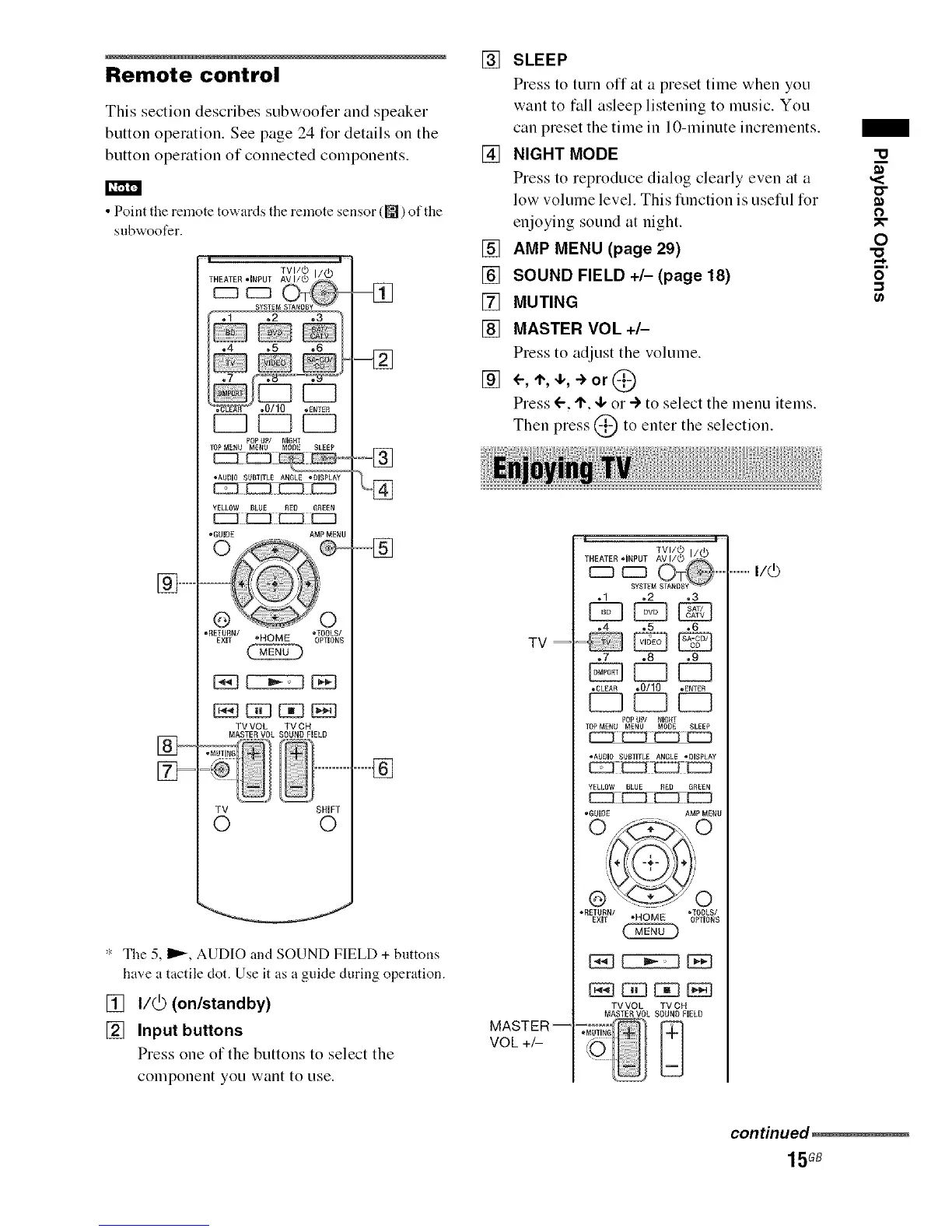 ": The 5, I_, AUDIO and SOUND FIELD + buttons