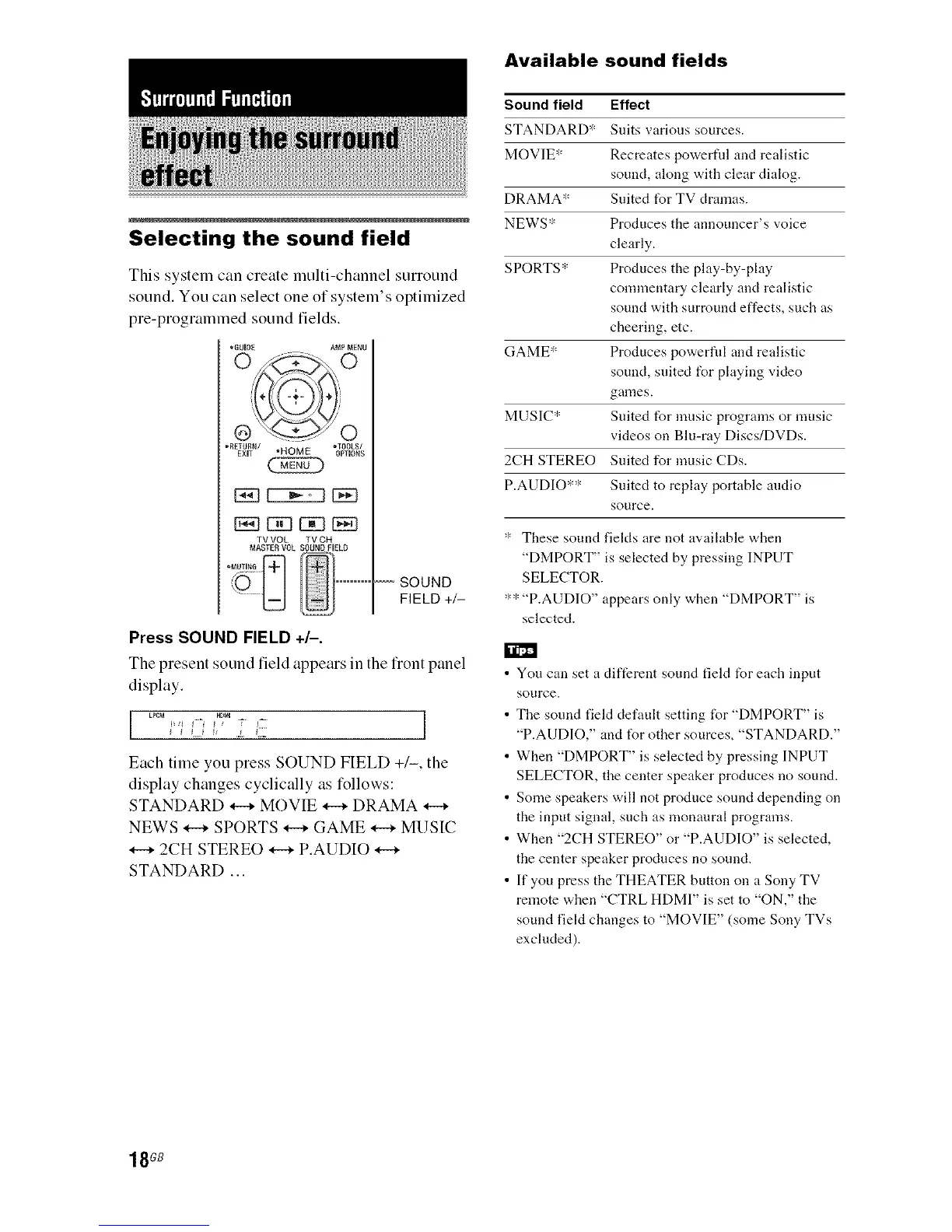 When "2CH STEREO" or "P.AUDIO" is selected,