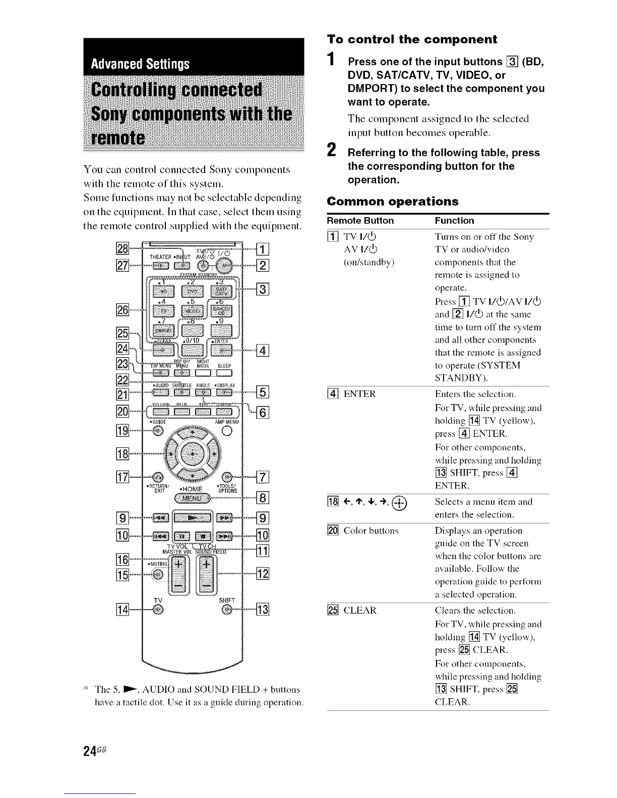 * The 5, I_, AUD]O and SOUND FIELD + buttons