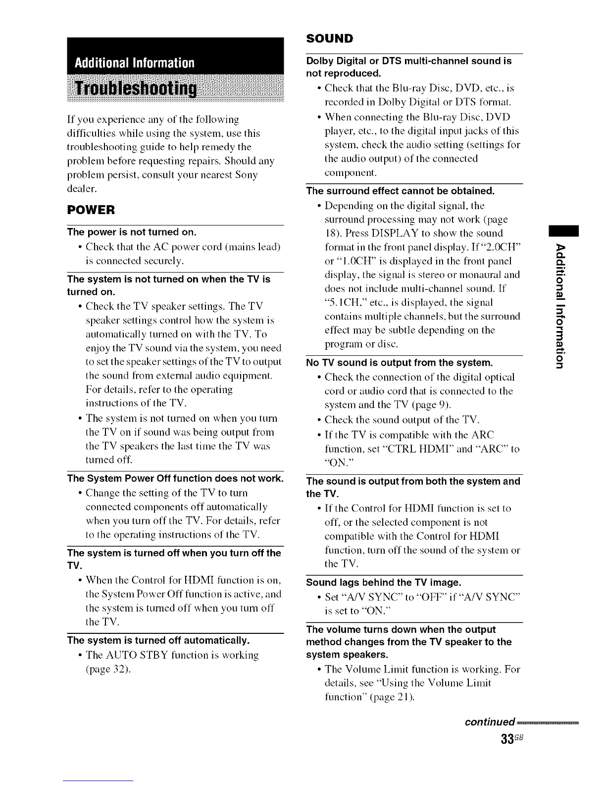 problem persist, consult your nearest Sony