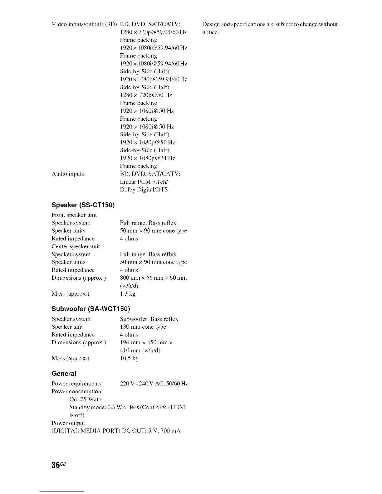 Subwoofer (SA-WCT150)