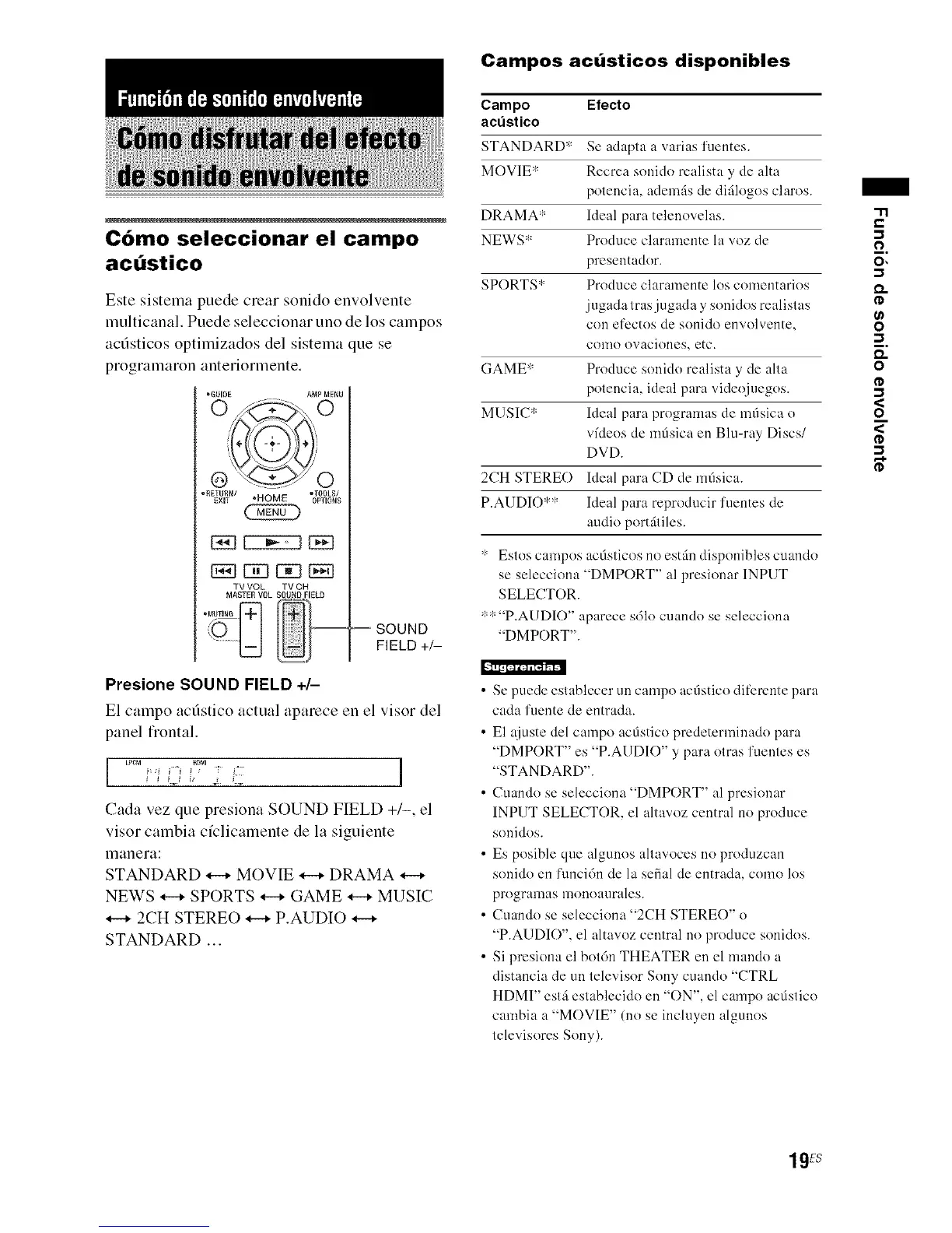 • E1 aiuste del campo acdstico prcdetemfinado para