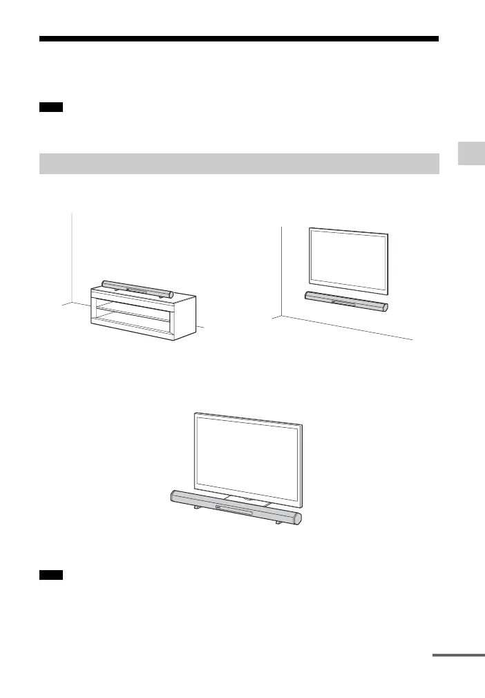 Note on installing the Sound Bar in front of a TV
