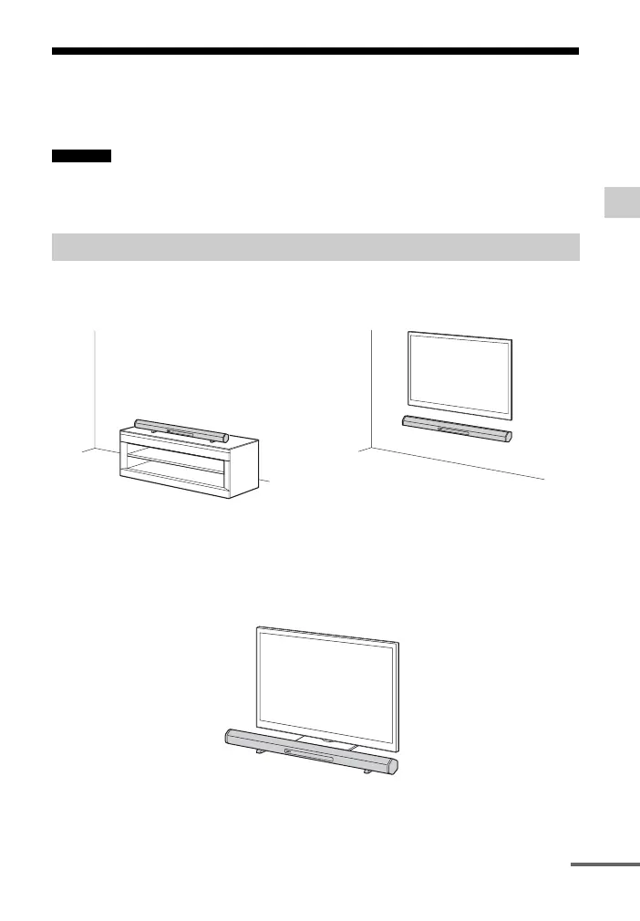 • Lorsque vous choisissez l’emplacement de la barre de son ou du caisson de graves, n’obstruez