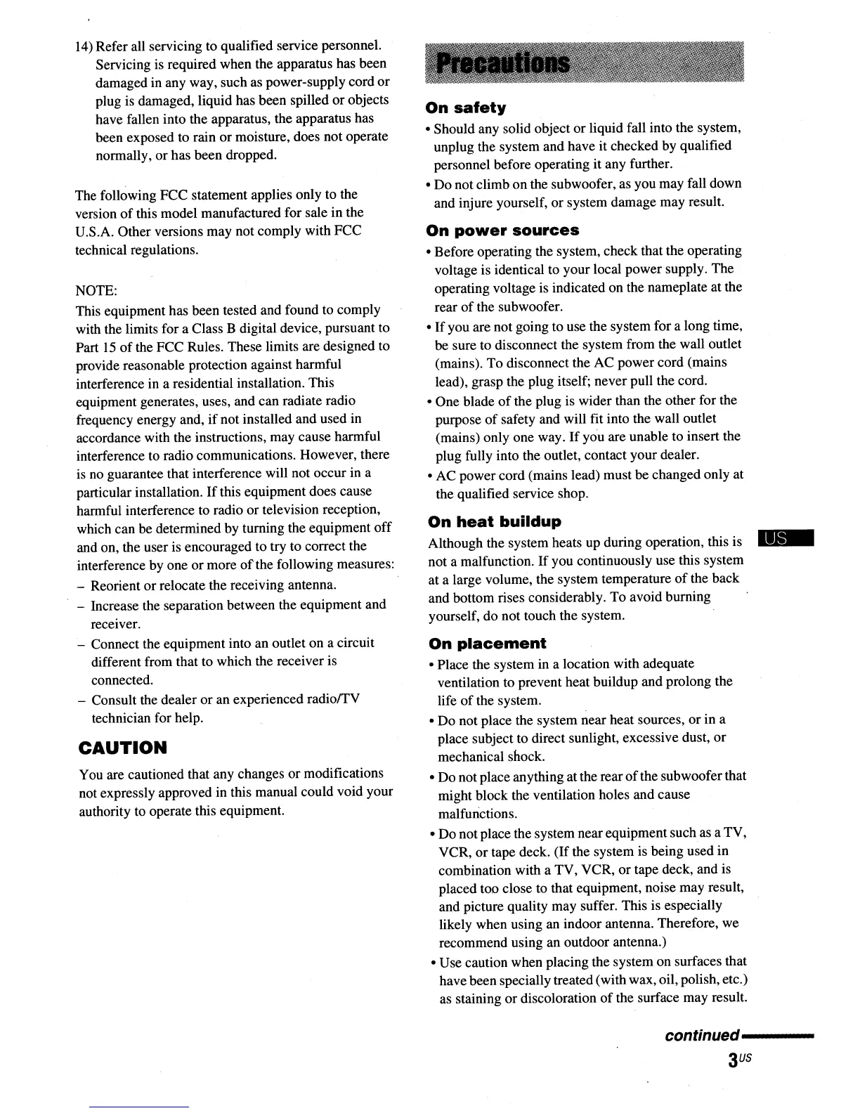 • Do not climb on the subwoofer, as you may fall down