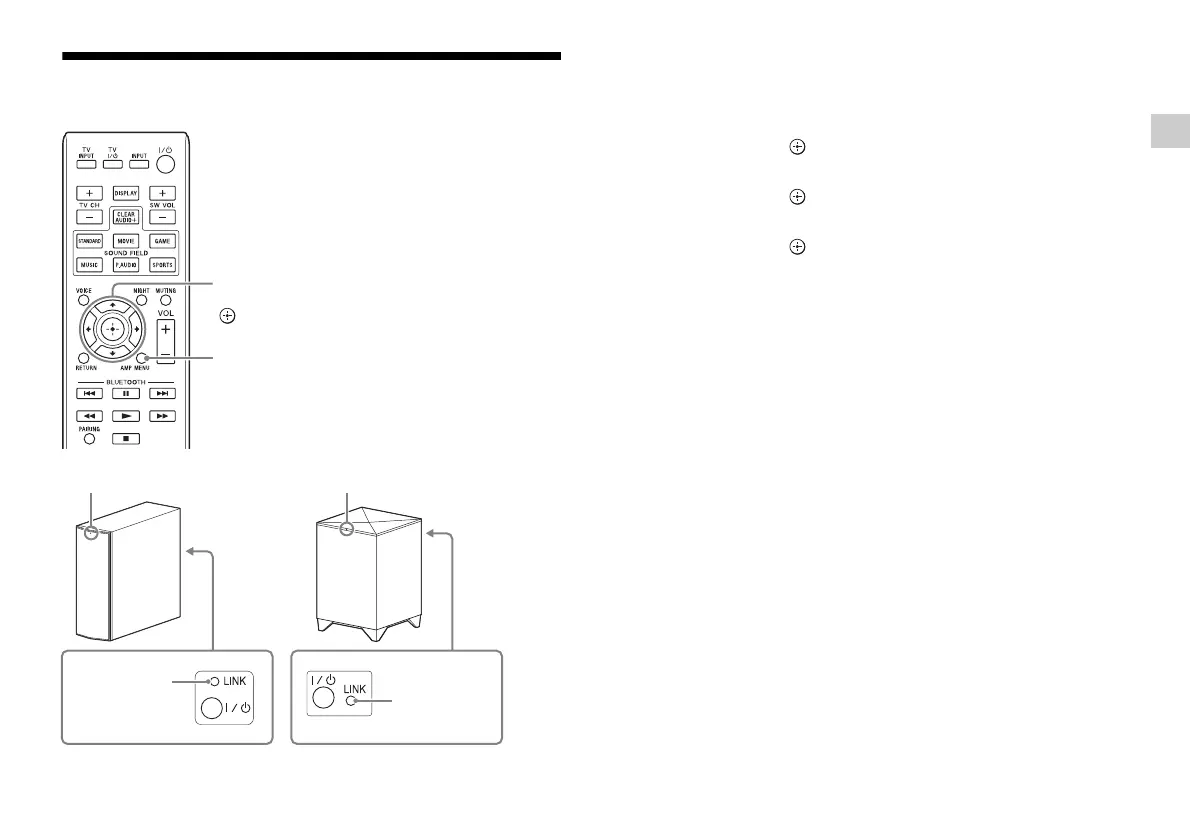 5 Presione el botón LINK en el subwoofer con la punta de una