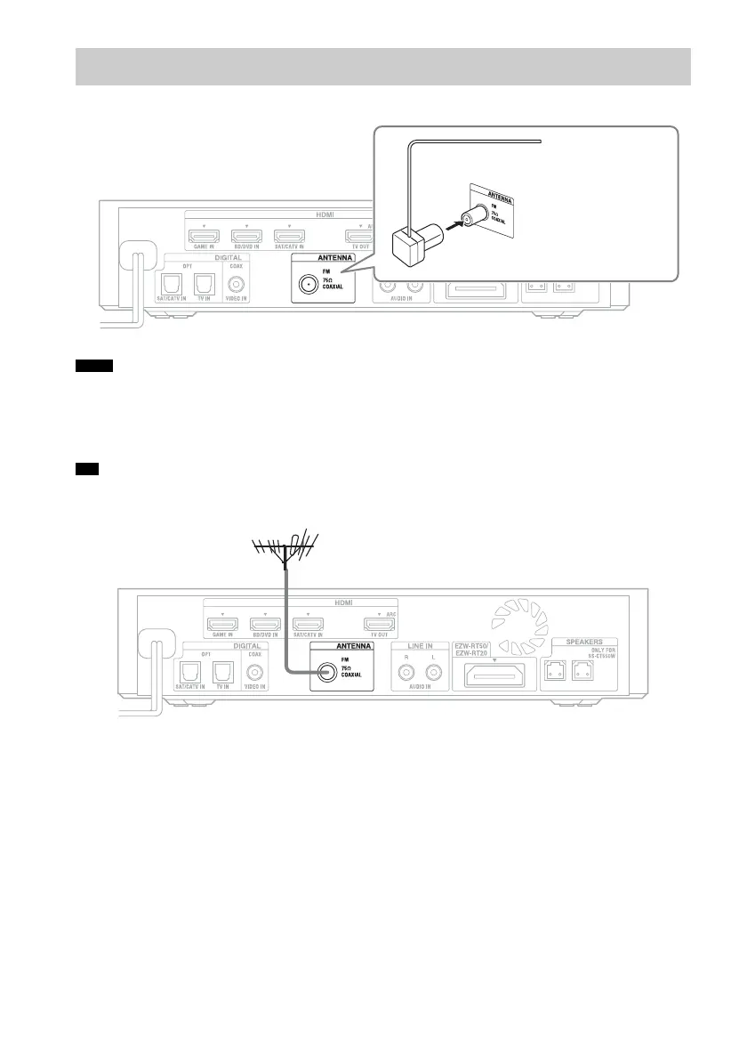 • If you have poor FM reception, use a 75-ohm coaxial cable (not supplied) to connect the receiver to an outdoor FM