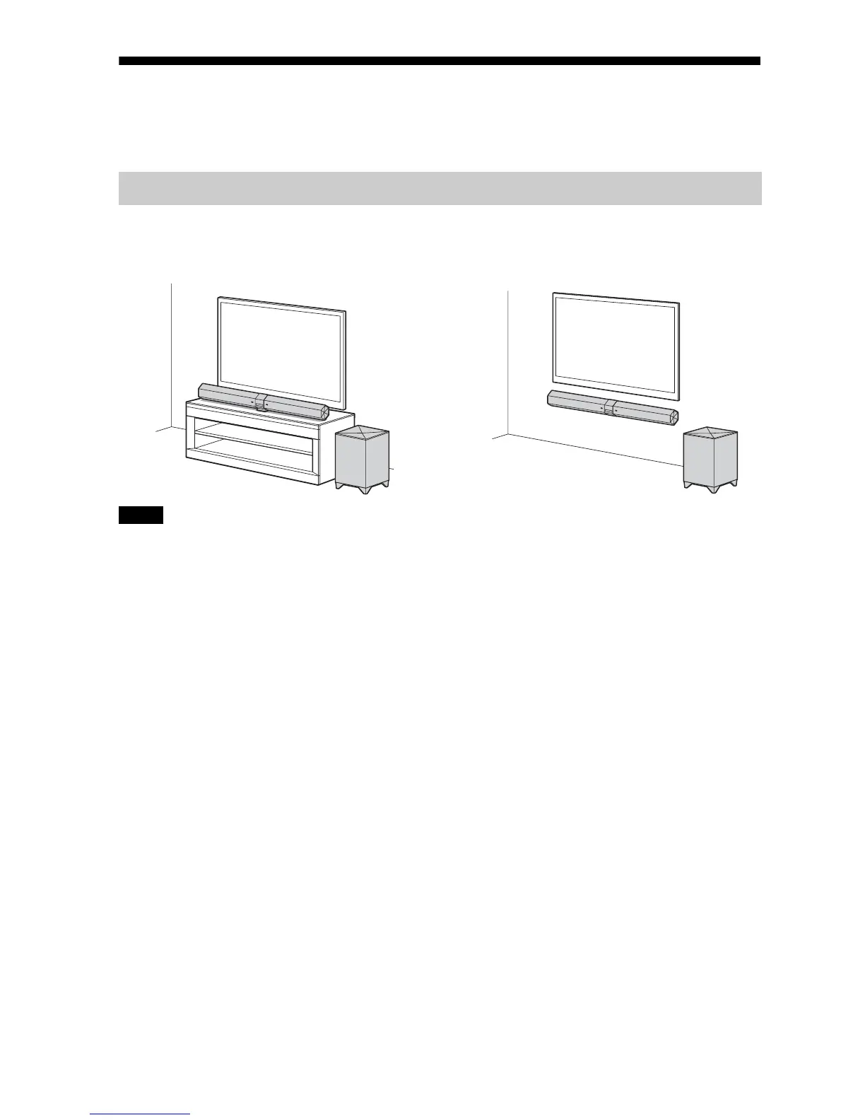 Take following precautions when installing the Sound Bar and the subwoofer.