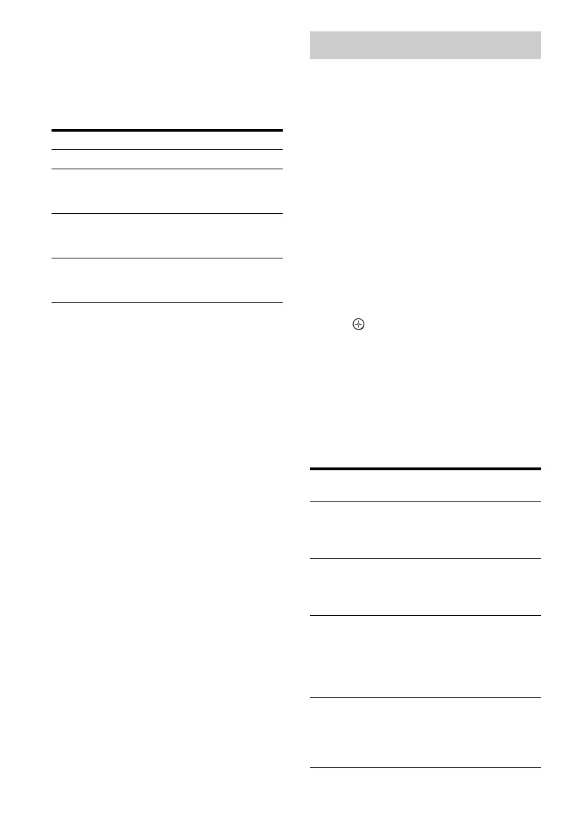 The table below shows the display when