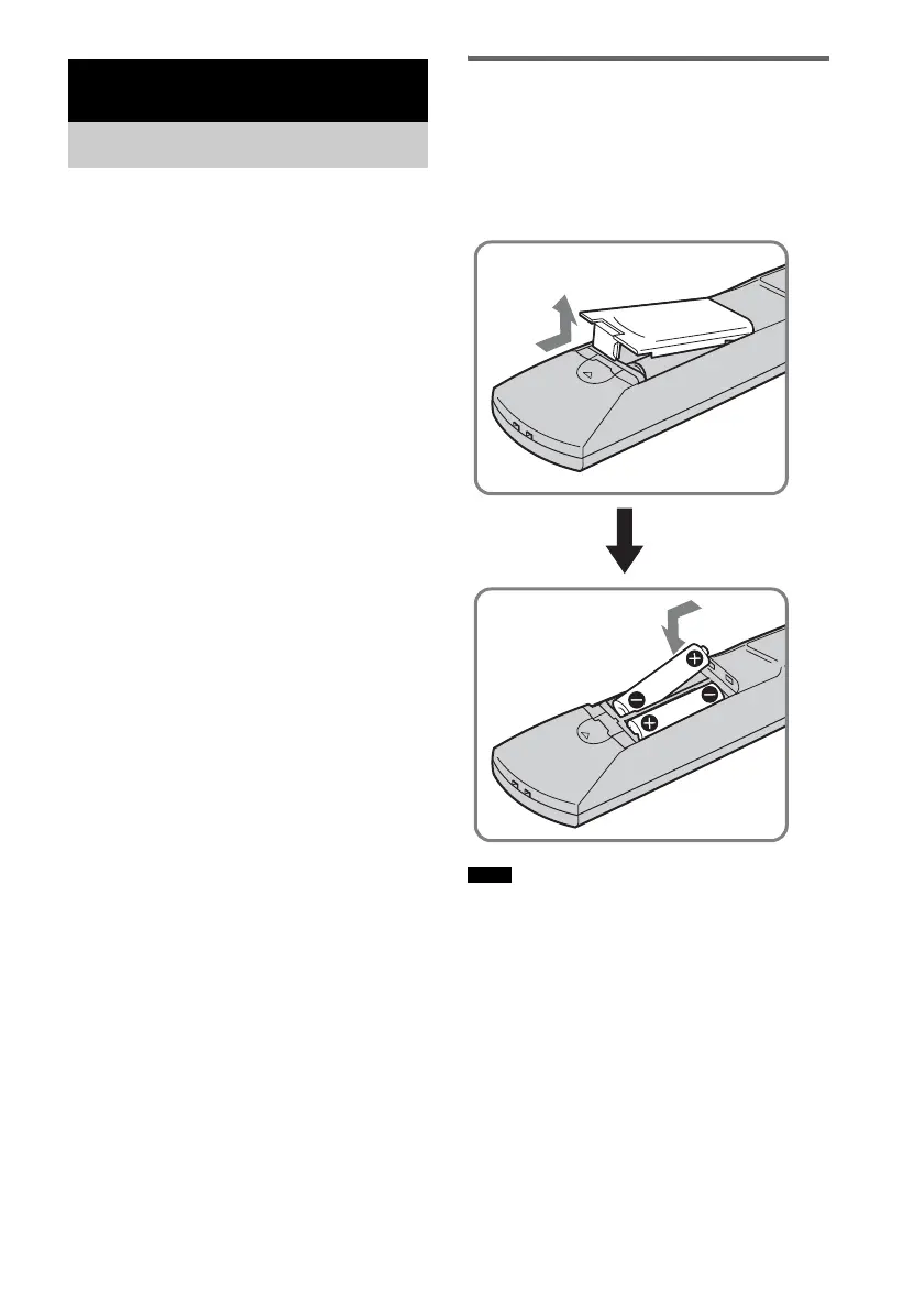 remote. Insert two size AA (R6) batteries by