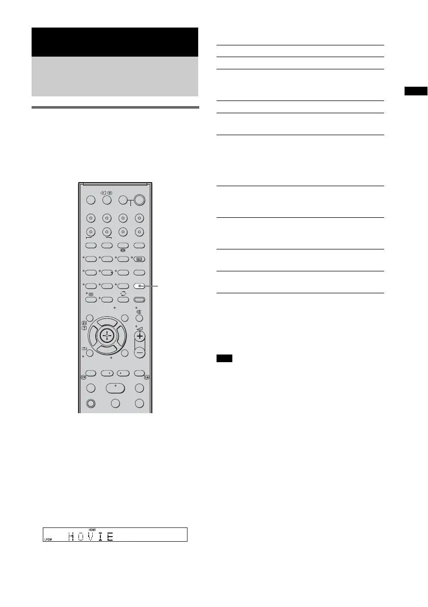 Each time you press the SOUND FIELD button,
