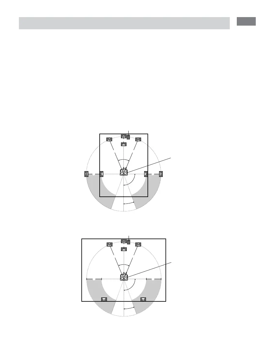 • Usted podrá colocar los altavoces perimétricos detrás o a ambos lados de usted, dependiendo de la forma