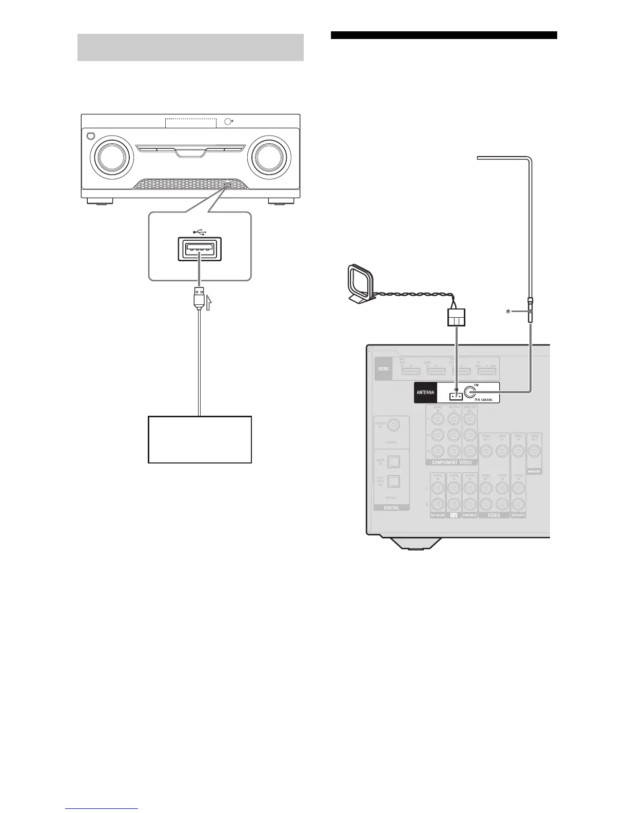 •After connecting the FM wire antenna (aerial),