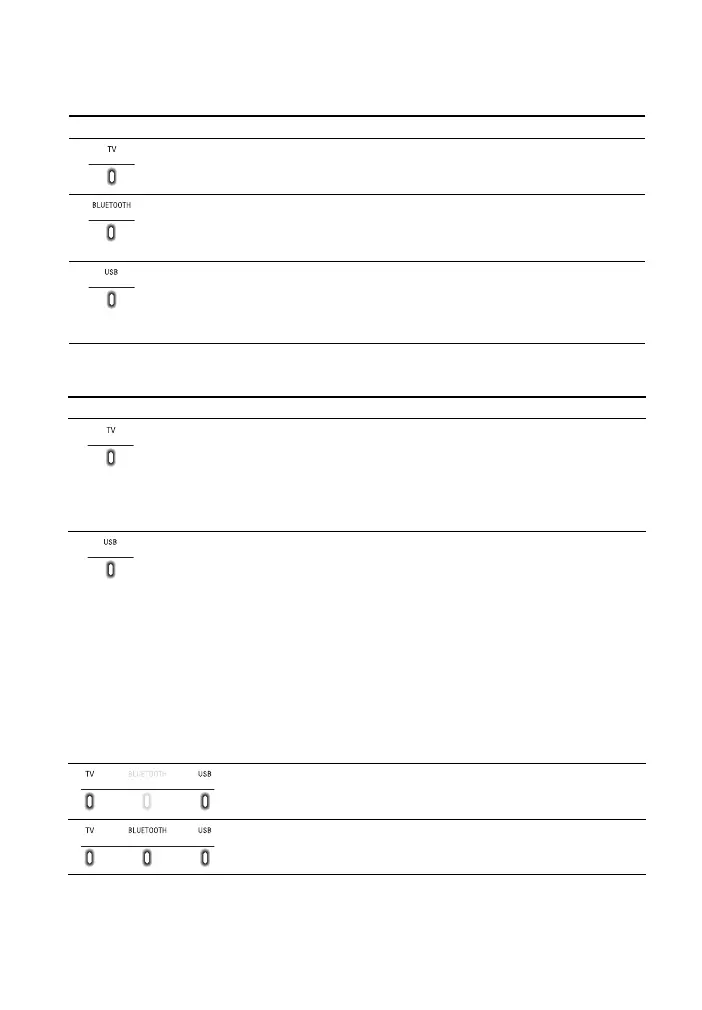 Lighting and flashing of the indicator(s) on the Bar Speaker indicate the input or