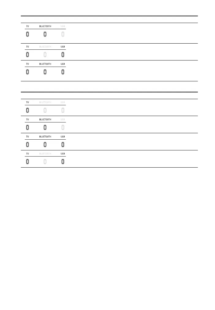 • Flashes once: The volume level is low (1 - 20)./The level of the bass