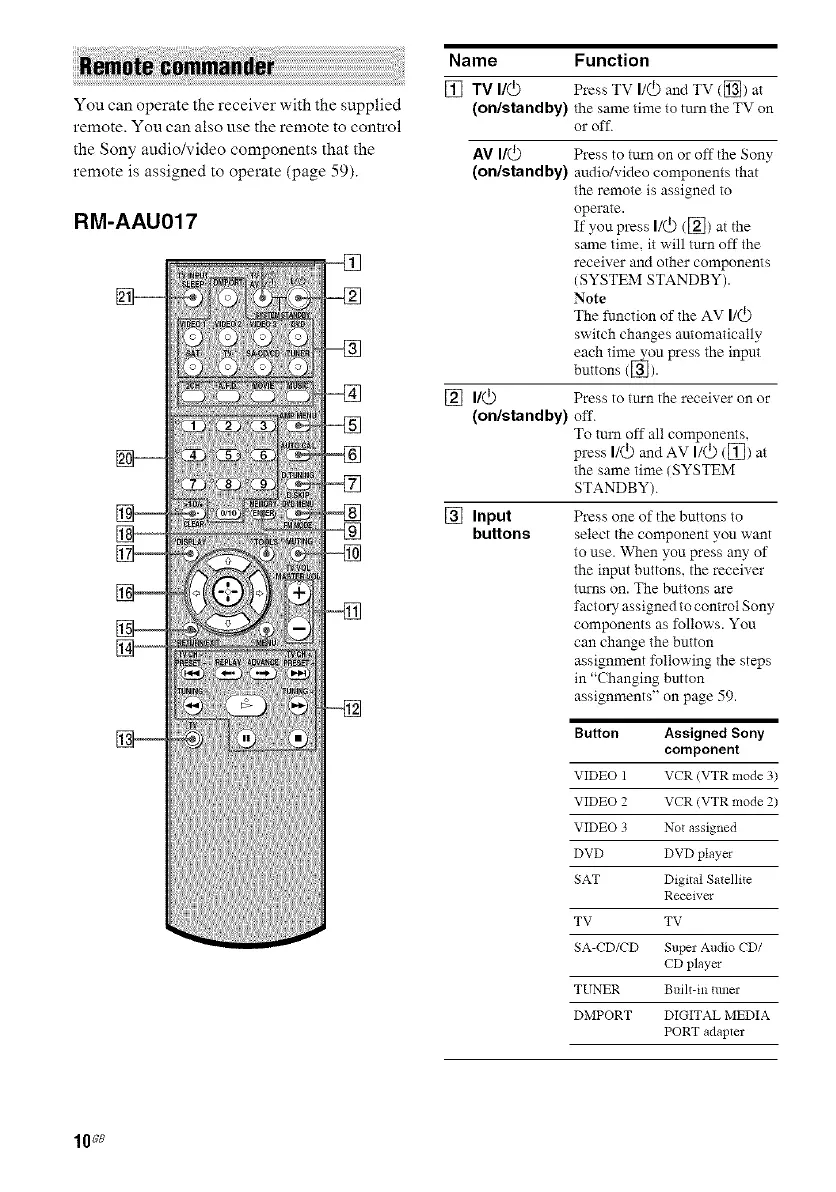 AV I/@ Press to tm'n on or off the Sony