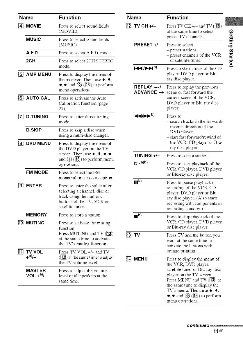 [] AMP MENU Press to display the menu of