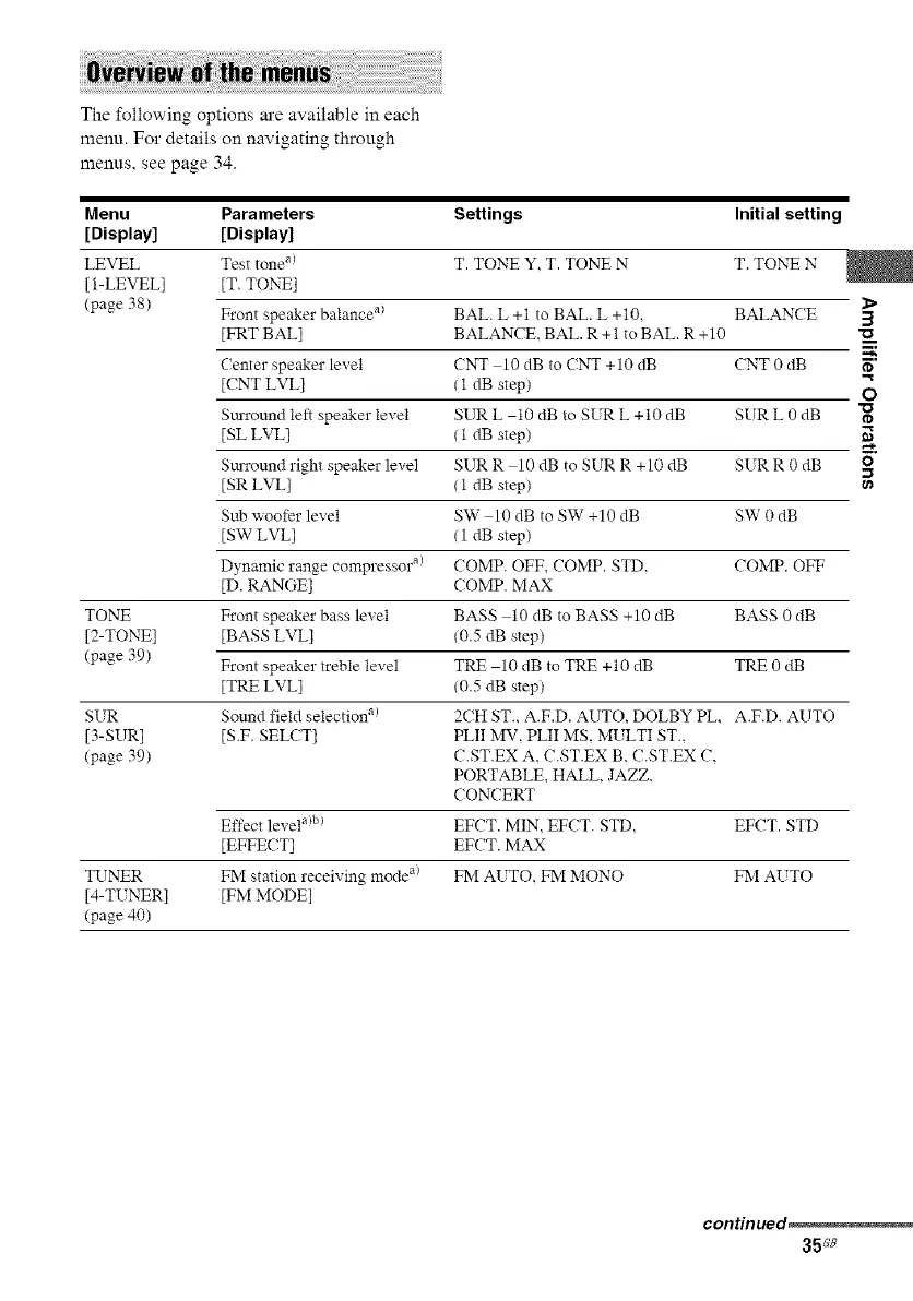 (page 39) Front speaker treble level TRE 10 dB to TRE +10 dB TRE 0 dB