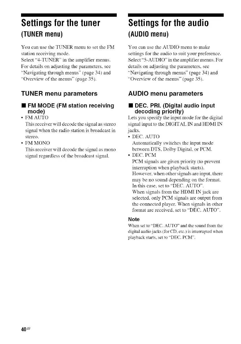 When set to "DEC. AUTO" and the sound from the