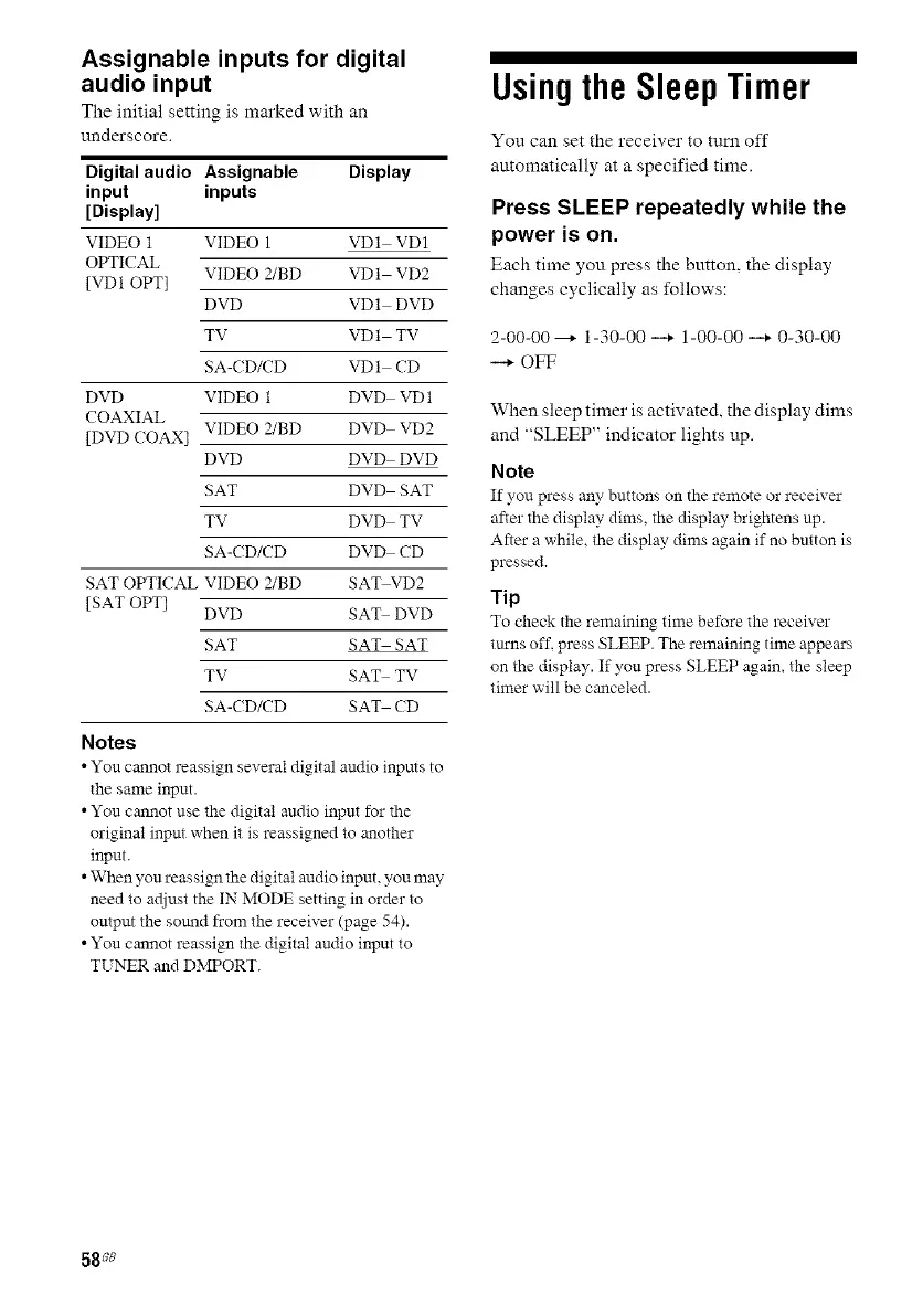 • When you reassign the digital audio input, you may