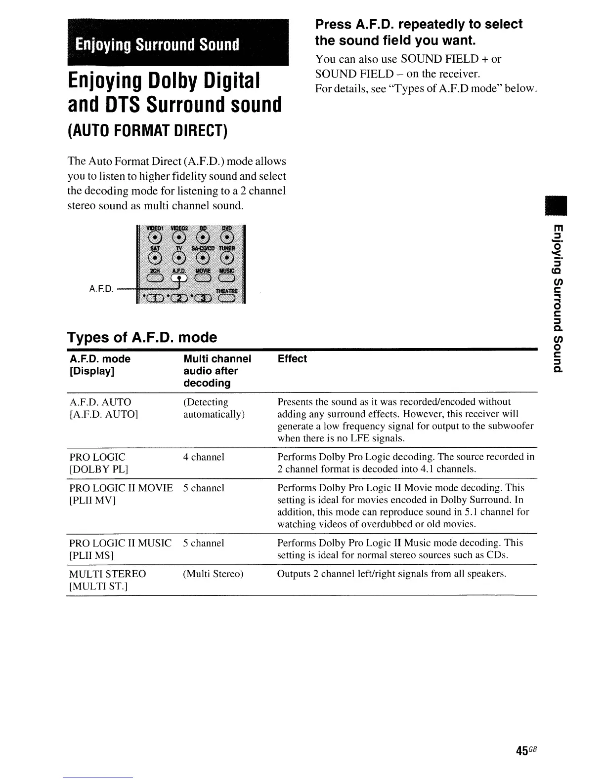 SOUND FIELD - on the receiver.