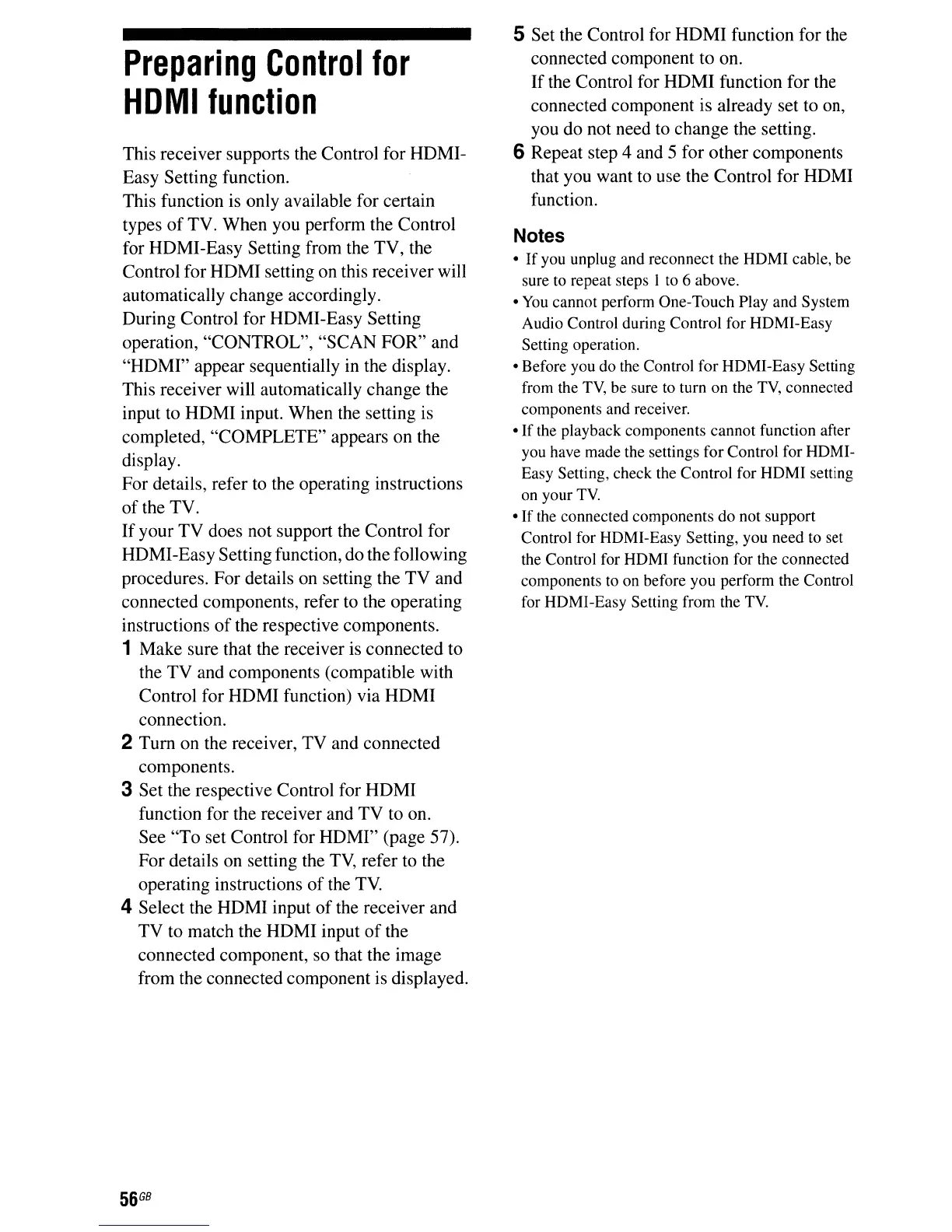 set Control for HDMI" (page 57).