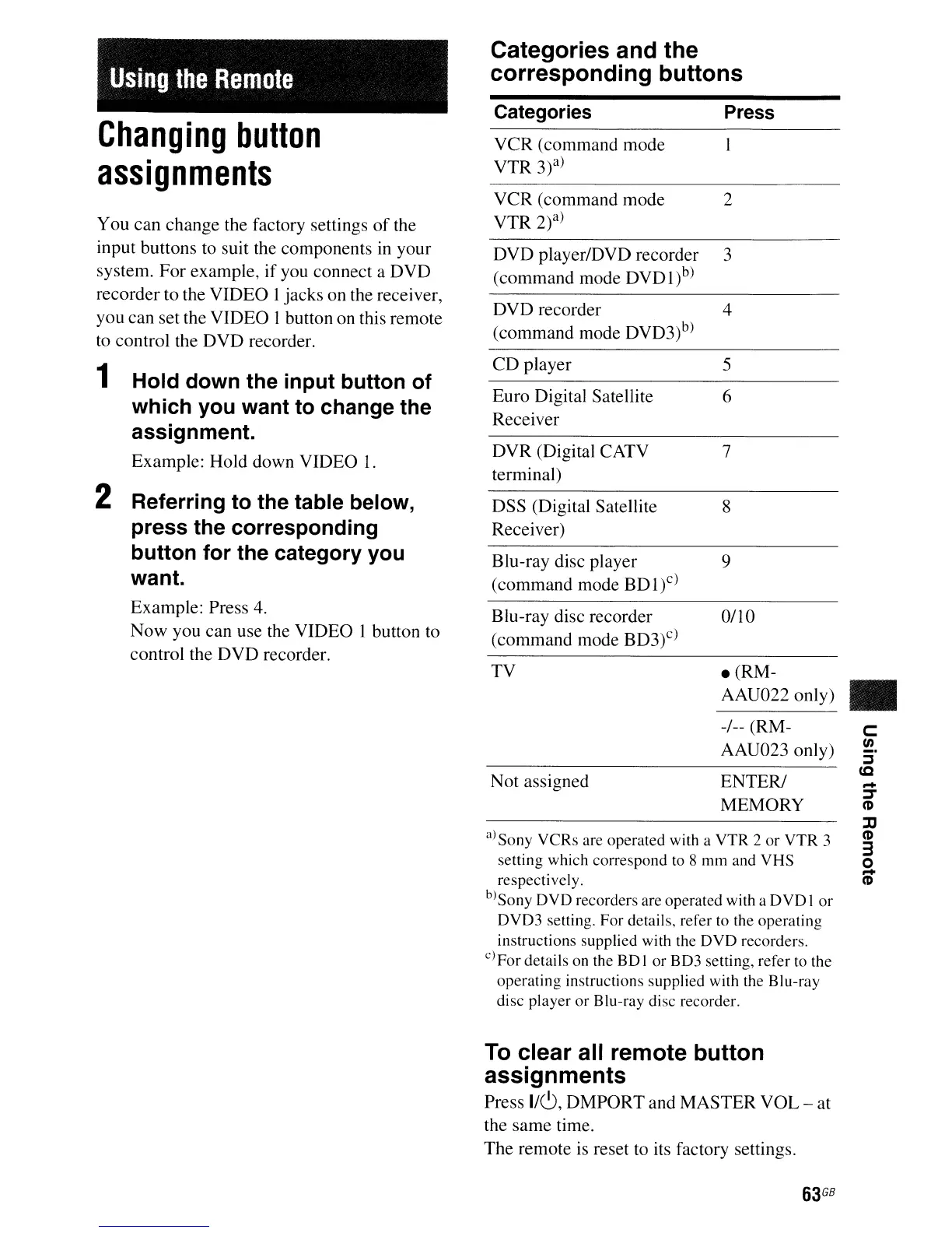 a)Sony VCRs are operated with a