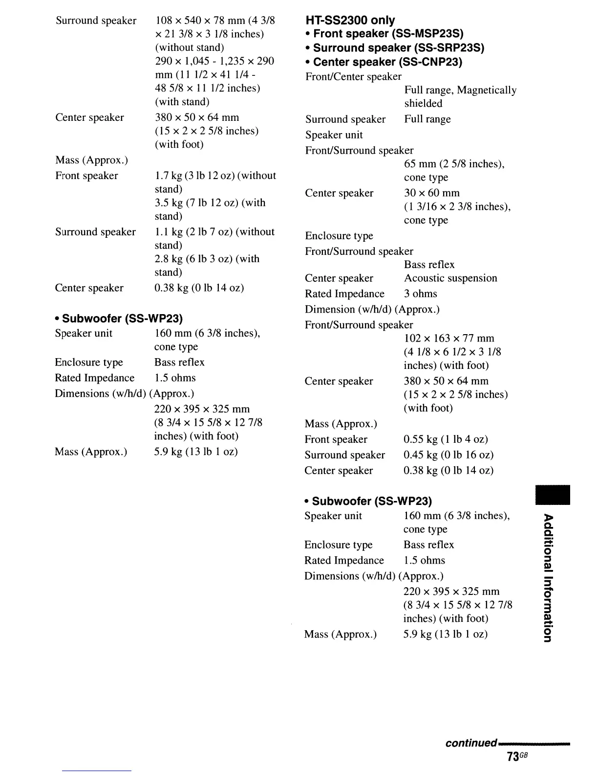 • Surround speaker (SS-SRP23S)