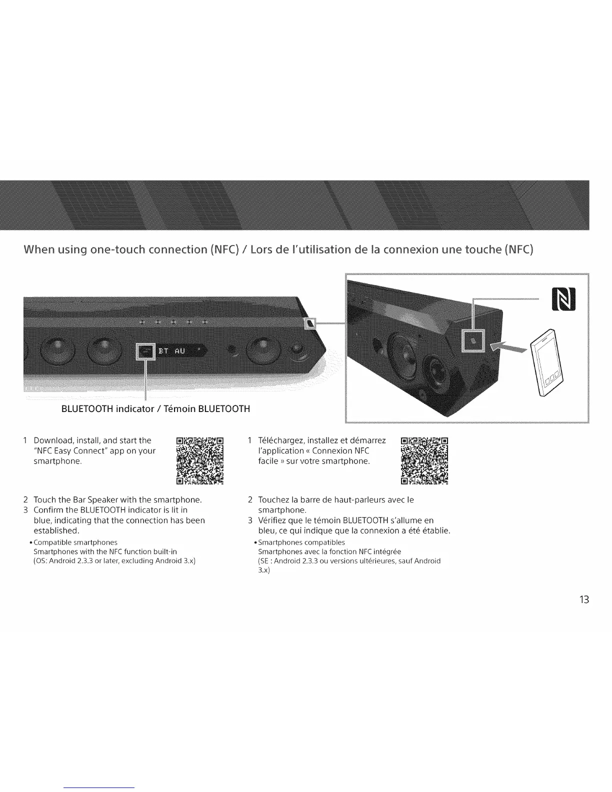 When using one-touch connection (NFC) / Lots de I'utilisation de la connexion une touche (NFC)