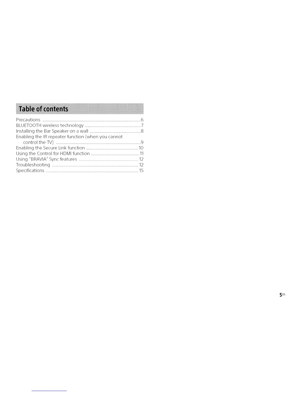 Using "BRAVIA" Sync features ................................................. 12