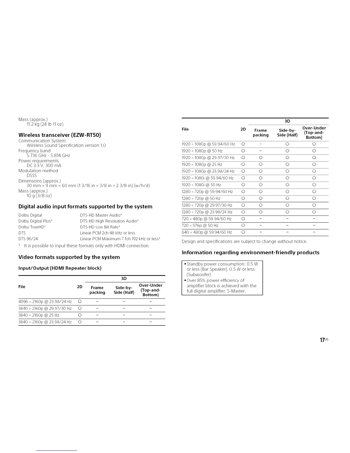 Wireless Sound Specification version 1.0 1920 x 1080p @ 59.94/60 Hz 0 - 0 0