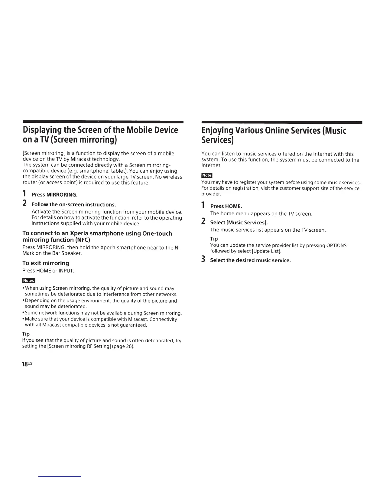 • Some network functions may not be available during Screen mirroring.