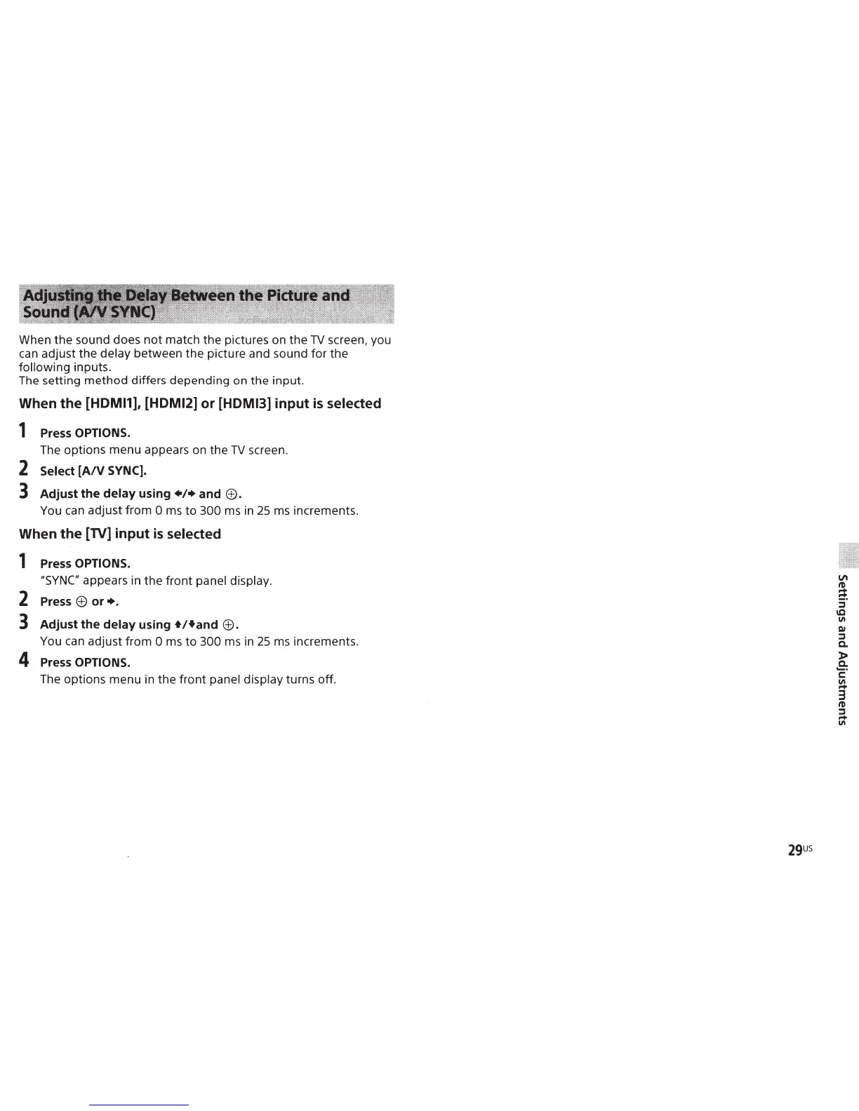 adjust the delay between the picture and sound