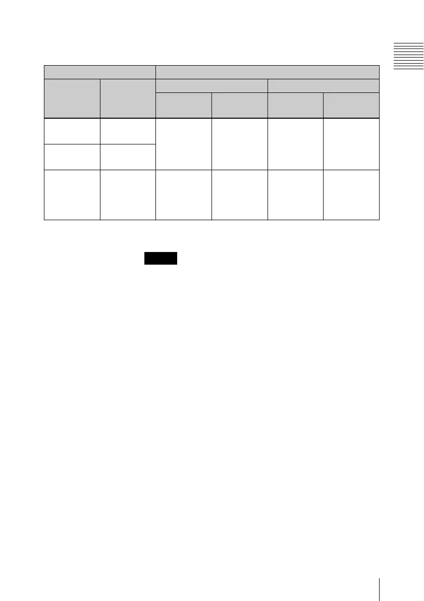 HDV 再生時にクロスコンバートを行わない場合(表の