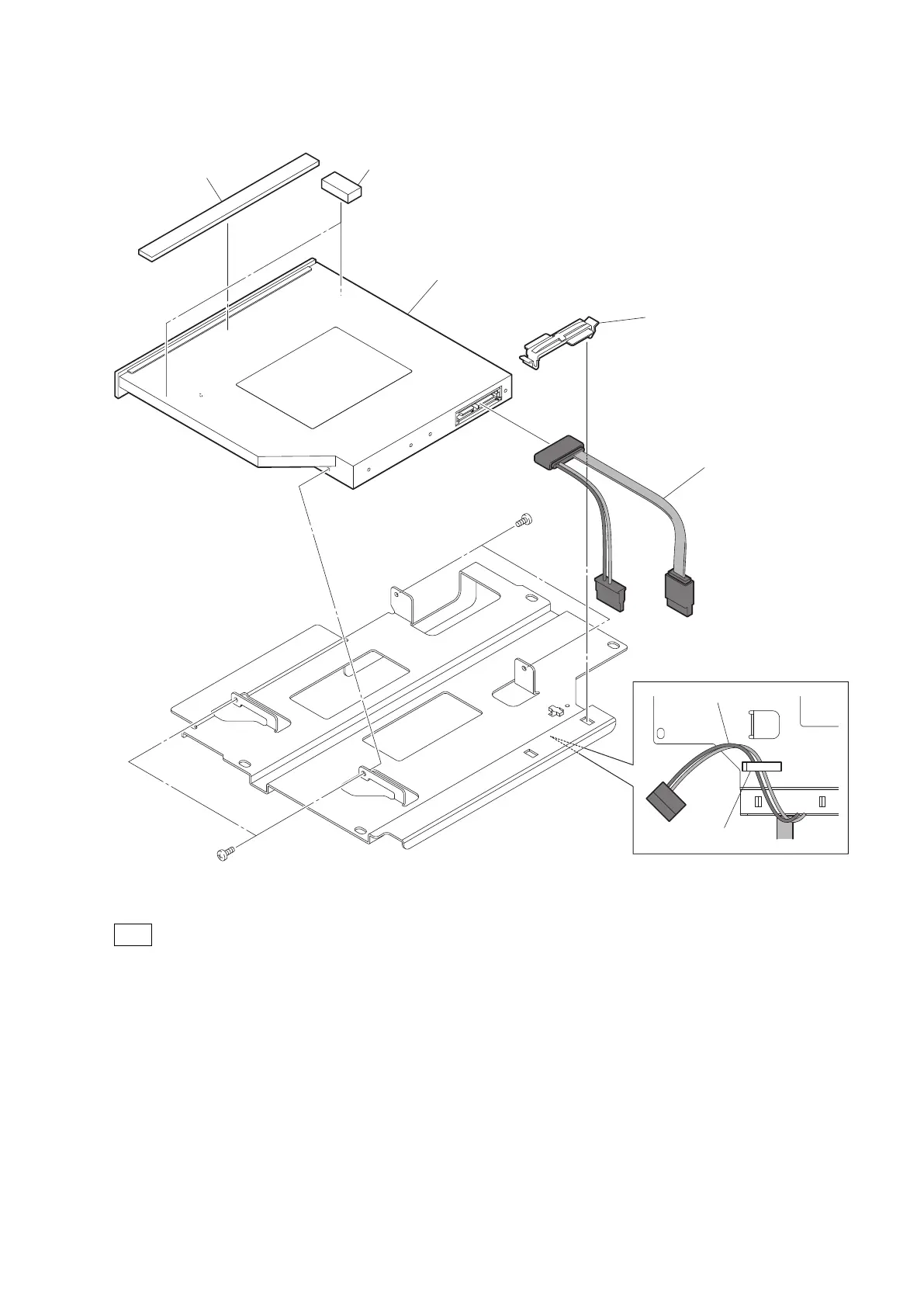8. Remove the two gaskets and the spacer from the DVD drive.