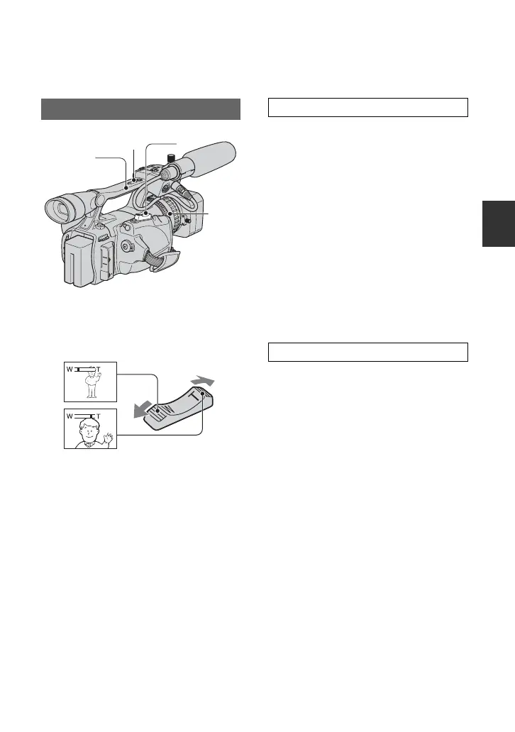 2 Press the handle zoom lever A to zoom