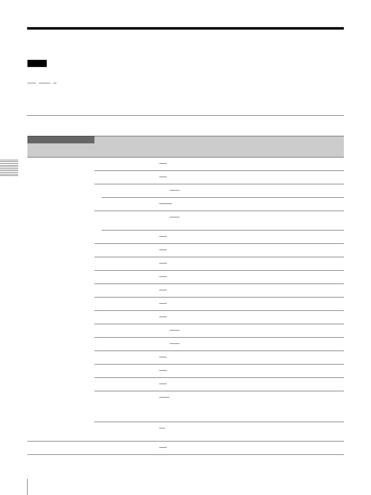 ON, OFF, 0, ... , in the Settings columns: Default settings