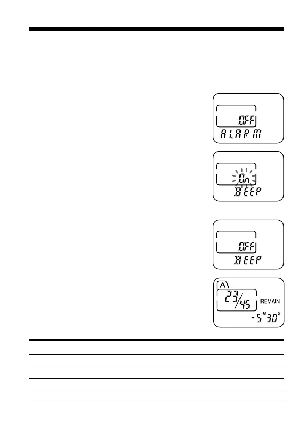 BEEP OFF: No beep sound will be heard except for the alarm and timer.