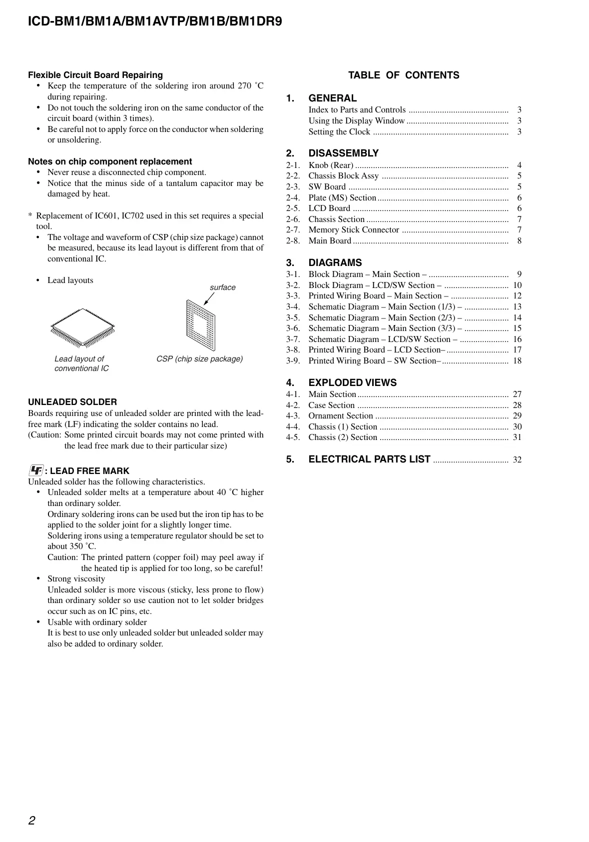 5. ELECTRICAL PARTS LIST .................................. 32