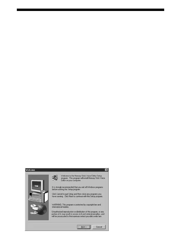 Install “Memory Stick Voice Editor“ software in your computer’s hard