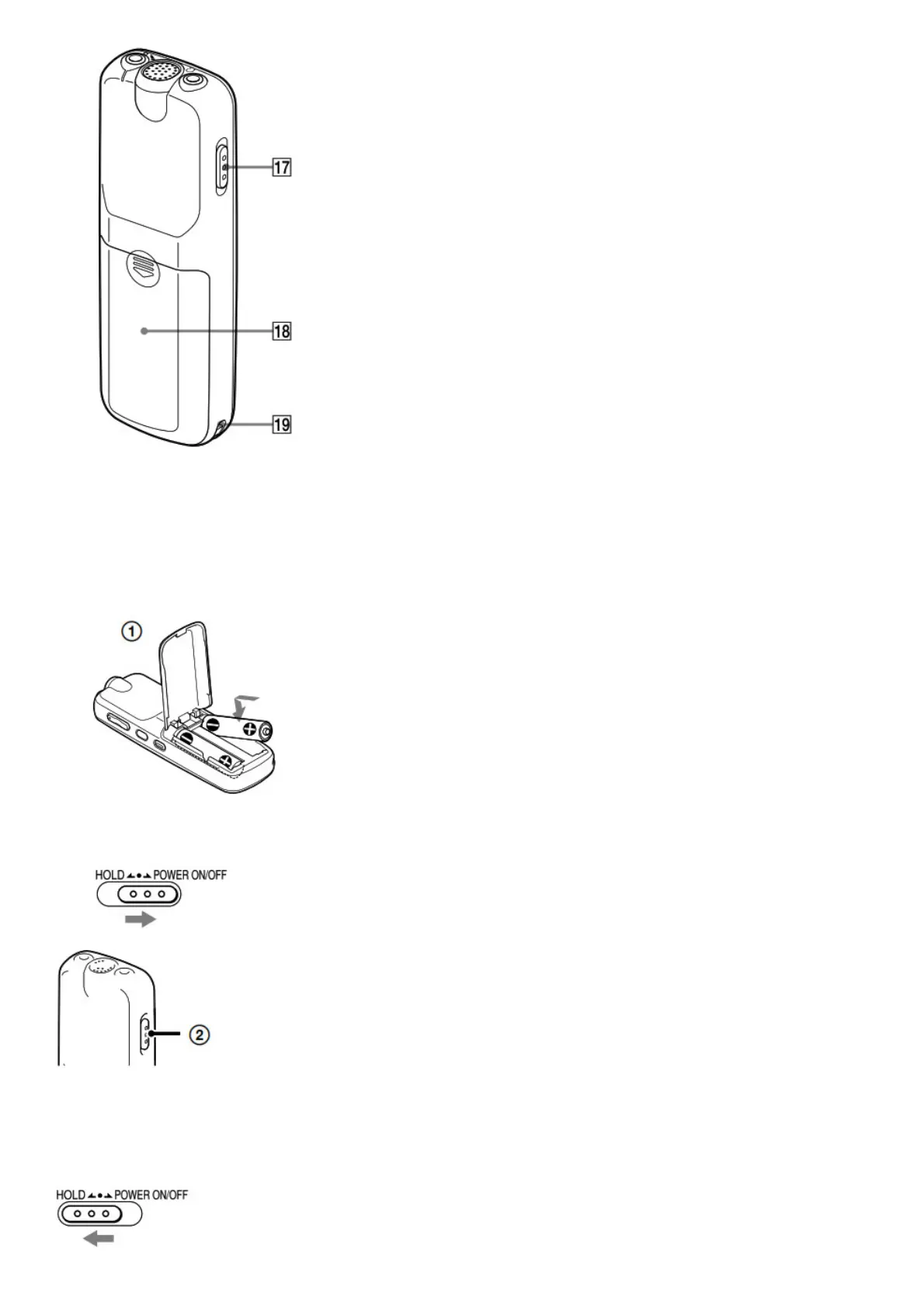 To turn the power off, slide and hold the HOLD•POWER ON/ OFF switch in the direction of “POWER ON/OFF” until
