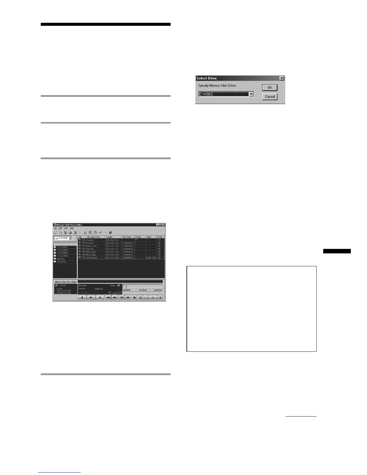 “Memory Stick Voice Editor“ Software Operations